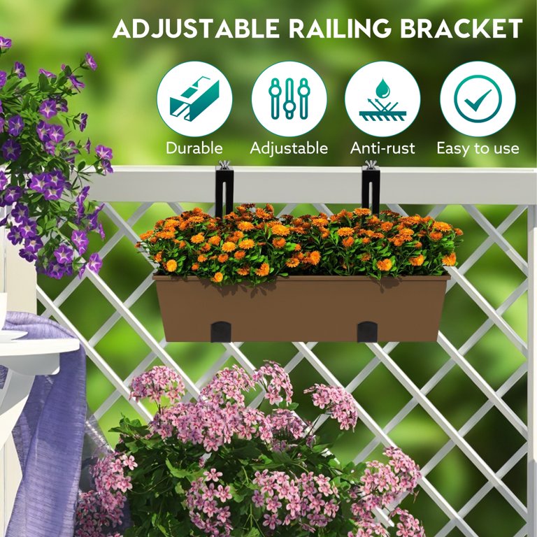 Yardwe 2pcs Planter Box Brackets Flower Box Rail Hanger Railing Holders For Balcony Patio Garden Walmart Com