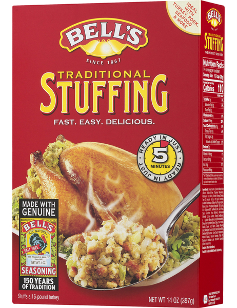 Prepare the Bells Traditional Stuffing according to the package directions. Add sausage and break apart until fully cooked. Web Bells Ready-Mixed Stuffing 14oz.